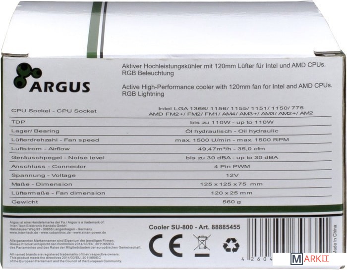 Markit » Системы охлаждения » Кулер для процессора Inter-Tech Argus SU-800