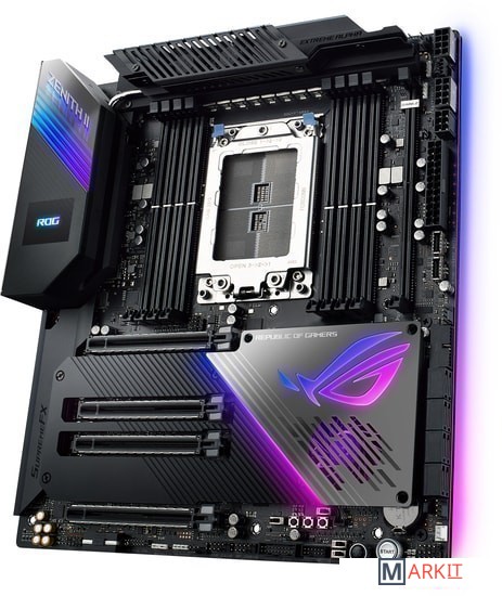 Основным отличием ASUS ROG Zenith II Extreme Alpha стали новые MOSFET. Вместо TDA21472 от Infineon с заявленной нагрузкой 70A в модели не-Alpha, в данной материнской плате установлены TDA21490 на 90A каждый. Поддержка процессоров до 64 ядер.