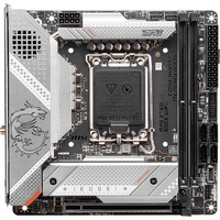 Материнская плата MPG Z790I EDGE WIF представлена в серебристо-белом оформлении. Стильный дизайн сочетается в ней с отличной производительностью.Серия MPG привлекает пользователей сочетанием высокой производительности и уникального стиля. Все больше геймеров, следуя современным тенденциям, хотят подчеркнуть свою индивидуальность. Именно поэтому серия MPG фокусируется не только на мощности линейки устройств, но и на их внешнем виде.Увеличенный радиаторБлагодаря увеличенному радиатору увеличивается общая площадь теплорассеяния, что способствует эффективному охлаждению под высокими нагрузками.Чипсетный радиатор FrozrЭффективное решение для охлаждения чипсета: радиатор с вентилятором.Тепловая трубкаСоединяет два радиатора системы питания, чтобы увеличить общую площадь теплорассеяния.Теплорассеиватель для транзисторовТеплорассеиватель для транзисторов На обратной стороне платы располагается теплорассеиватель, который способствует охлаждению силовых транзисторов..Термопрокладка – 7 Вт/(м·K)На транзисторах системы питания имеются термопрокладки с повышенной теплопроводностью, составляющей 7 Вт/(м·K). Дополнительными термопрокладками также снабжены дроссели.Система охлаждения M.2 Shield FROZR с радиатором чипсетаПредназначена для SSD в слотах M.2 и предотвращает падение производительности, которое может случиться из-за перегрева.Поддерживаются процессоры 12-/ 13-го поколения Intel® Core™, Pentium® Gold и Celeron® для сокета LGA 1700Поддерживается память DDR5, до 8000+(OC) МГцВысокоскоростные интерфейсы: слоты PCIe 5.0, Lightning Gen 4 x4 M.2, USB 3.2 Gen 2x2Мощная система питания: Duet Rail по схеме 10+1+1 фаз, Core Boost, Memory BoostЭффективное охлаждение: большой радиатор с тепловой трубкой, термопрокладки на катушках с теплопроводностью 7 Вт/(м·K), технология M.2 Shield Frozr2.5G Ethernet и Intel Wi-Fi 6E: высокоскоростное и стабильное проводное и беспроводное сетевое подключение для широкого спектра приложенийАудиосистема AUDIO BOOST 5: высококачественное звучание, создающее неповторимую атмосферу в играхВысококачественная конструкция: 12-слойная печатная плата, изготовленная по серверным стандартамПредустановленная панель ввода/вывода: защищает от электромагнитных помех и облегчает установку материнской платы