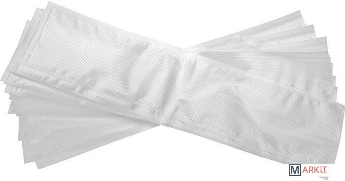 30 профессиональных пакетов размером 12x55 см для вакуумной упаковки колбас. Ребристая внутренняя поверхность для оптимального вакуумирования. Высокая прочность пакета допускает замораживание