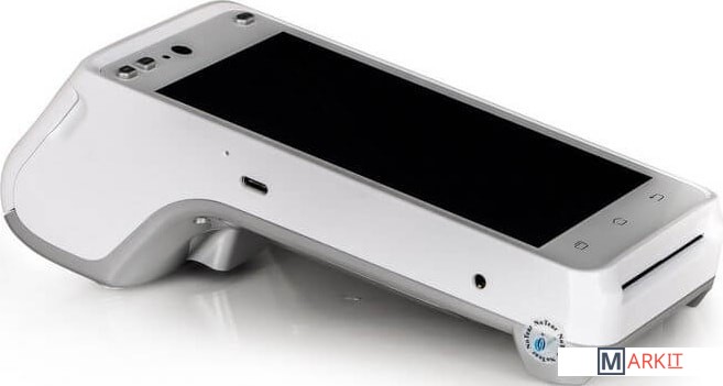 Переносной терминал-кассовый аппарат со встроенным Wi-Fi и Bluetooth, двойной камерой, которая может читать 1D и 2D коды, и аккумулятором высокой емкости.